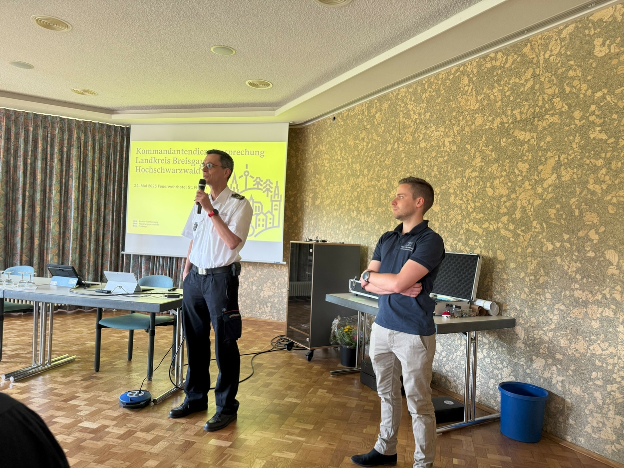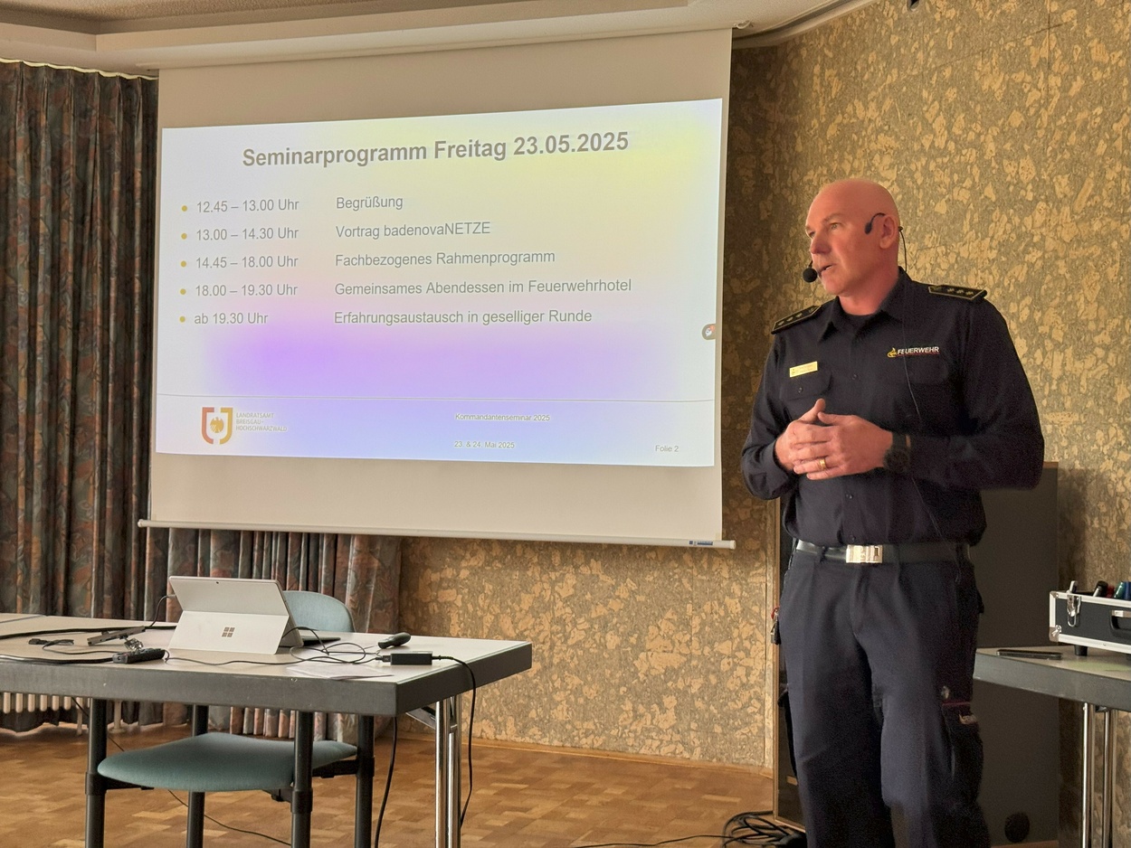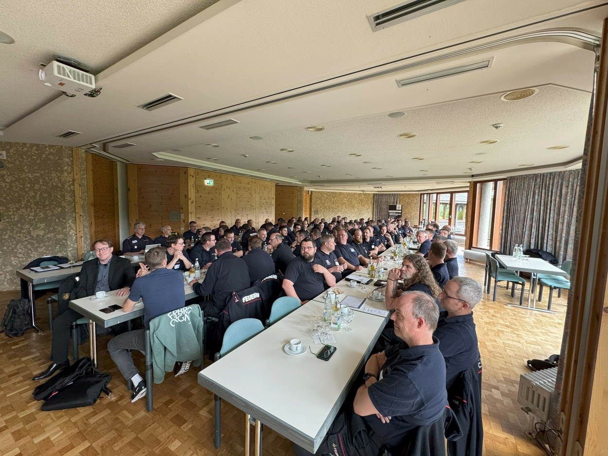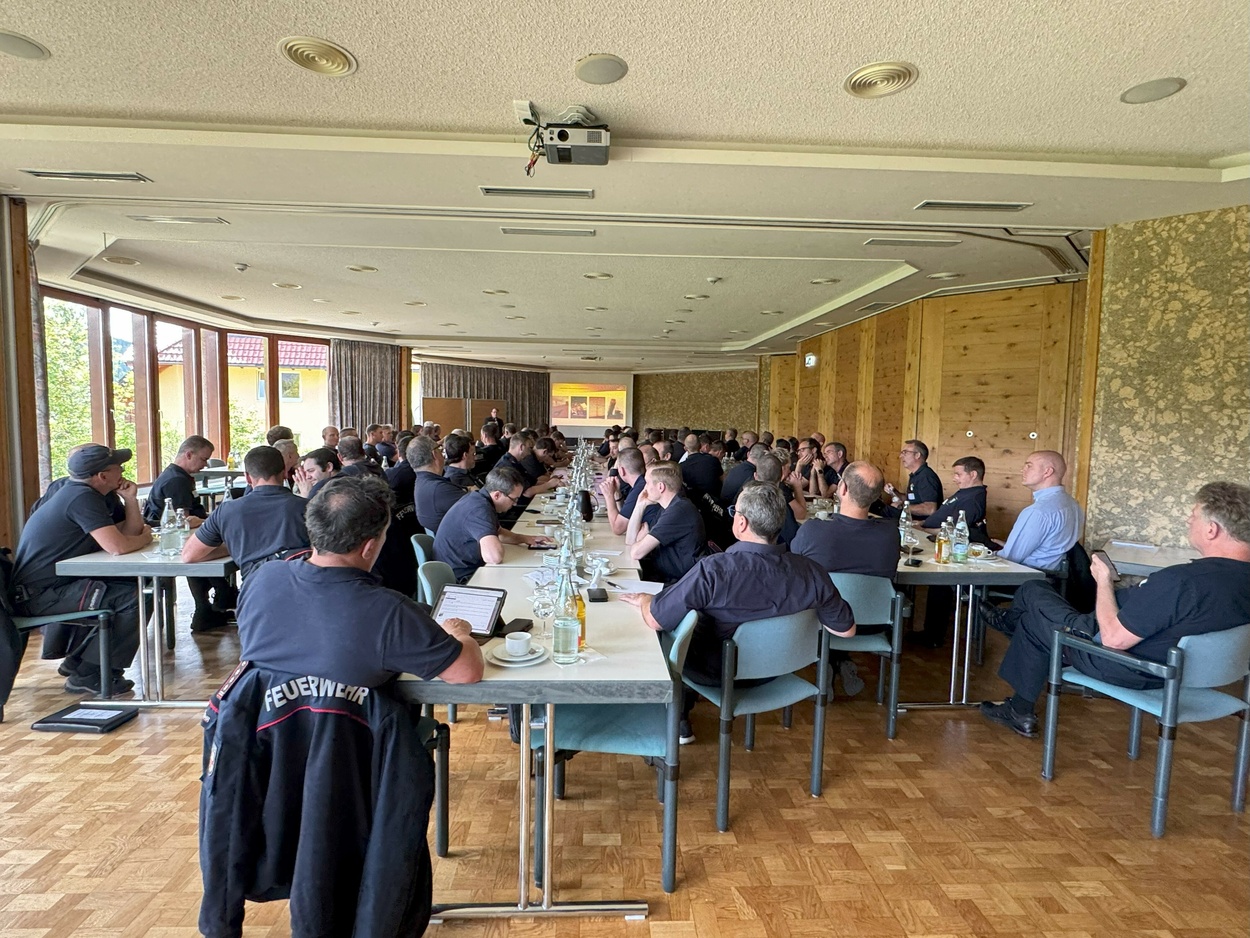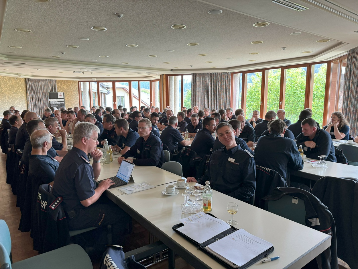 26.05.2025Nach mehrjähriger Pause, trafen sich am Freitag, den 23. Mai die Führungskräfte der Feuerwehren im Landkreis Breisgau-Hochschwarzwald zum zweitägigen Kommandanten-Seminar im Feuerwehrhotel in Hinterzarten. Etwa 100 Kommandanten, Abteilungskommandanten und stellvertretende Kommandanten folgten der Einladung von Kreisbrandmeister Mike Hengstler an den Titisee, der mit seinem Mitarbeiterstab ein vielfältiges Programm geboten hatte.