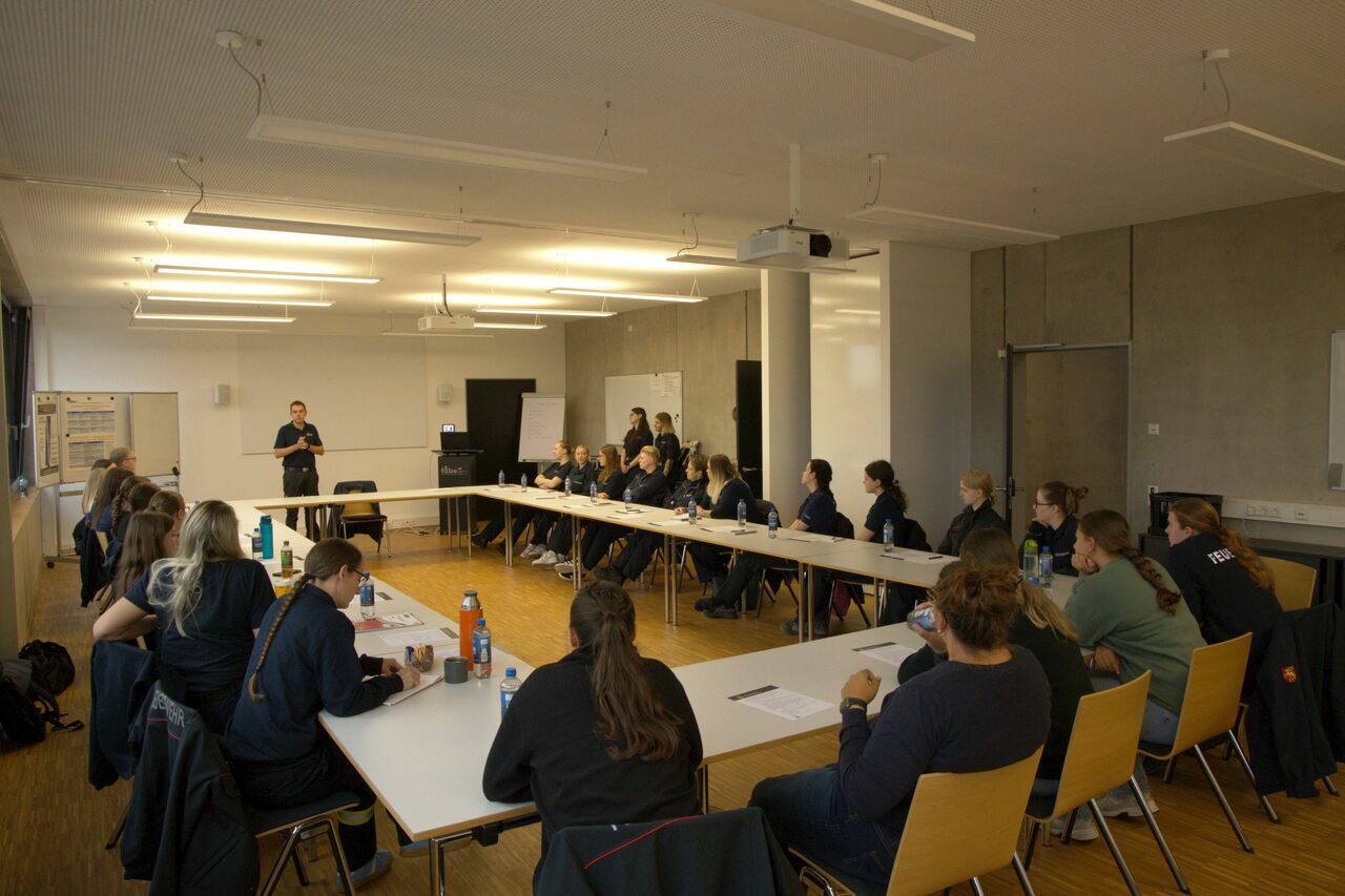 Insgesamt waren 26 Frauen aus dem gesamten Landkreis gekommen, um gemeinsam zu lernen, zu lachen und vor allem sich auszutauschen. Der Tag begann mit einer Begrüßung durch die Organisatorinnen – die Leiterinnen des Fachbereich Feuerwehrfrauen, Antonia Hoch (FF Glottertal) und Juliana Steiert (FF Ehrenkirchen). Die beiden stellten sich und den KFV-Fachbereich vor und übergaben das Wort schließlich an Christian Schweizer (FF Ehrenkirchen), als einer der füba-Ausbilder.