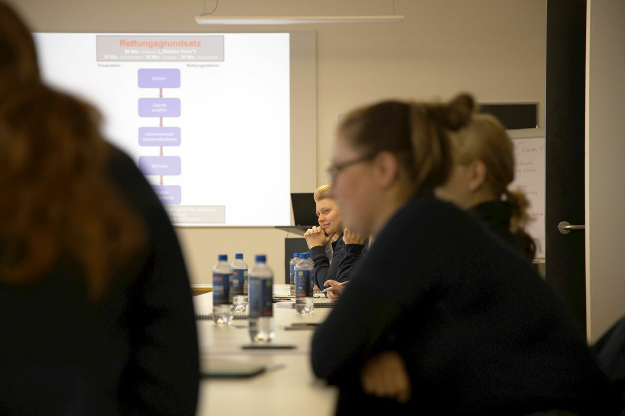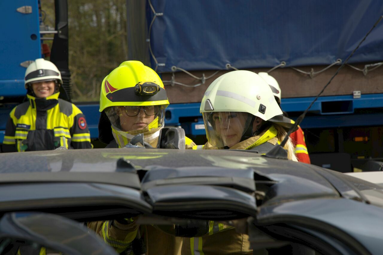 Nach einer kurzen theoretischen Phase und einer kleinen Pause, in der sich schon rege unterhalten wurde, gingen die Frauen in drei Gruppen verteilt auf das Außengelände, um das Geübte nun anzuwenden, zu wiederholen und das Wissen zu teilen. In drei Stationen wurden unter anderem verschiedene Antriebsarten von Fahrzeugen besprochen, die Personenrettung oder das Absichern von Fahrzeugen erprobt.